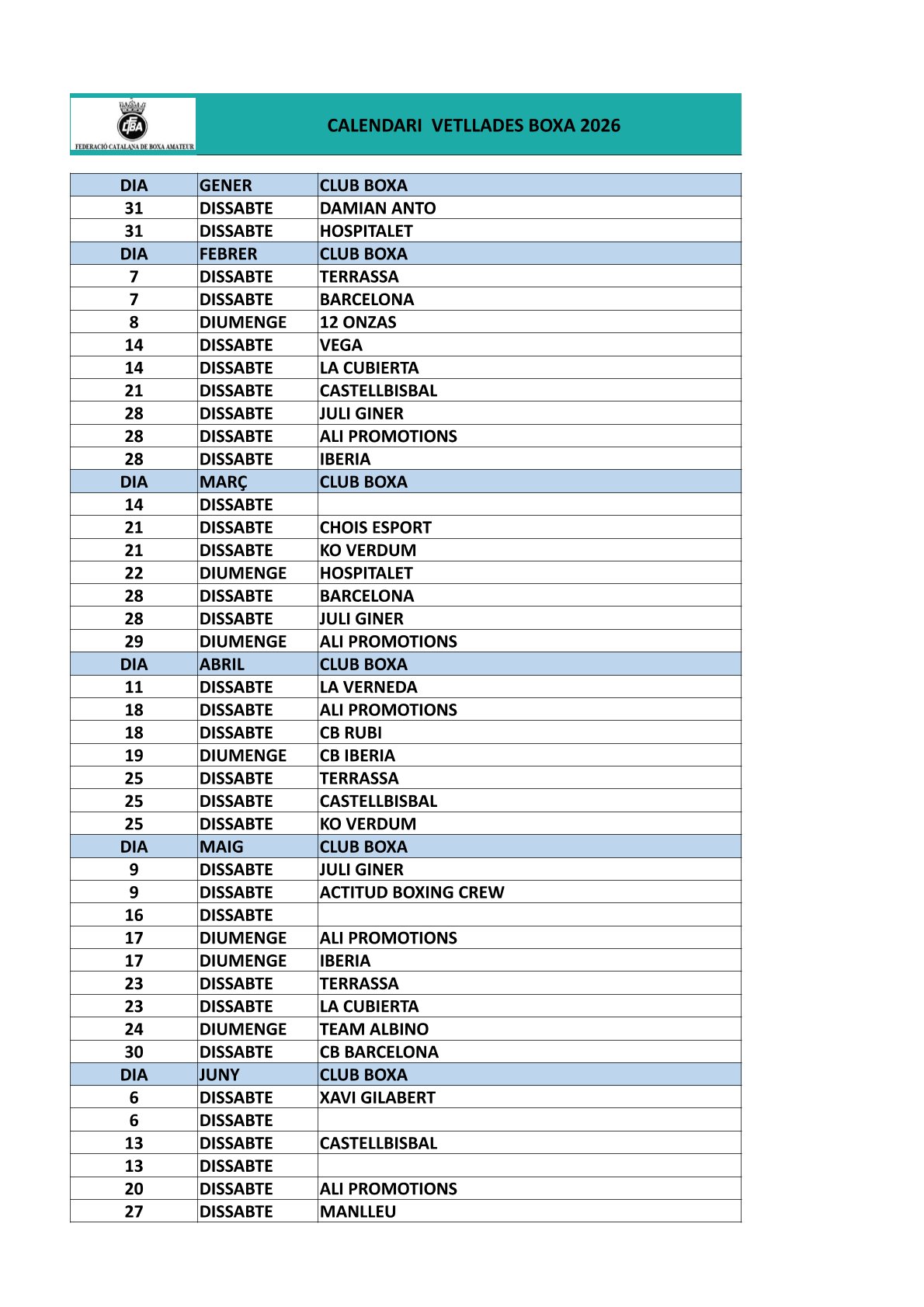 (Es recorda que el dia de la vetllada els boxejadors hauran de portar omplert el certificat d’autoresponsabilitat mèdica)